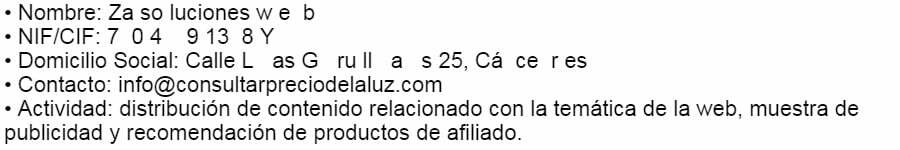 Cuando visitas Consultarpreciodelaluz.com, asumes la condición de usuario, por lo que el contenido de este documento te afecta directamente. Por ello, es imprescindible que lo leas para disipar cualquier duda que puedas tener y tener conocimiento de causa sobre las condiciones que estás aceptando.
